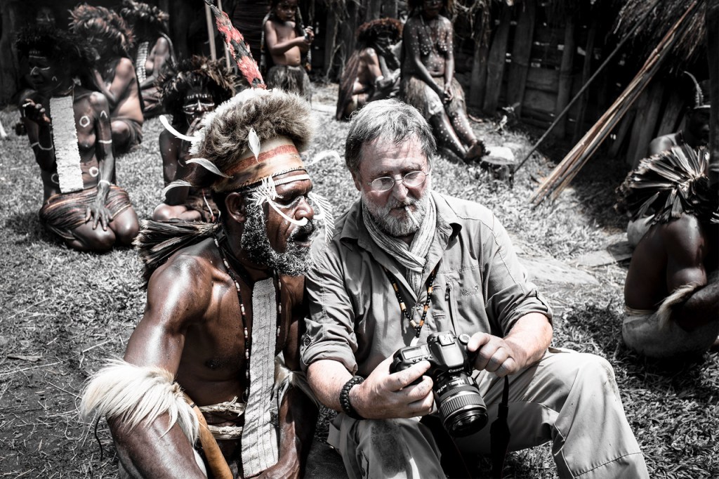 Duasti, die Frau des Clanchefs Melis erzählt diese Geschichte, während sie bereits den gesamten Vormittag damit verbracht hatte, Gemüse, Süßkartoffeln, Taro, Bananen, Farnkräuter und Schilfherzen für das bevorstehende Schweinefest vorzubereiten. Heute wird das Schweinefest im Weiler Okubua gefeiert und das ganze Dorf hat sich dafür bereits in Schale geworfen. Die Frauen tragen ihre Schilfgrasröcke, über dem Rücken mehrere Netze, die auch für die den Transport von Kindern und Waren genutzt werden, Ketten aus Kaurimuscheln und Bambus. Ihre Köpfe schmücken prächtige Hauben aus bunten Federn. Ihre Gesichter und Körper sind mit hellen Erdfarben bemalt und als Tagescreme haben sie dick Schweinefett aufgetragen. Auch die Männer laufen heute, wichtig wie immer, in ihrem „Sonntagsstaat“ umher. Nackt, bis auf den unverkennbare Peniskürbis, der in allen Größen von S bis XXL vertreten ist.