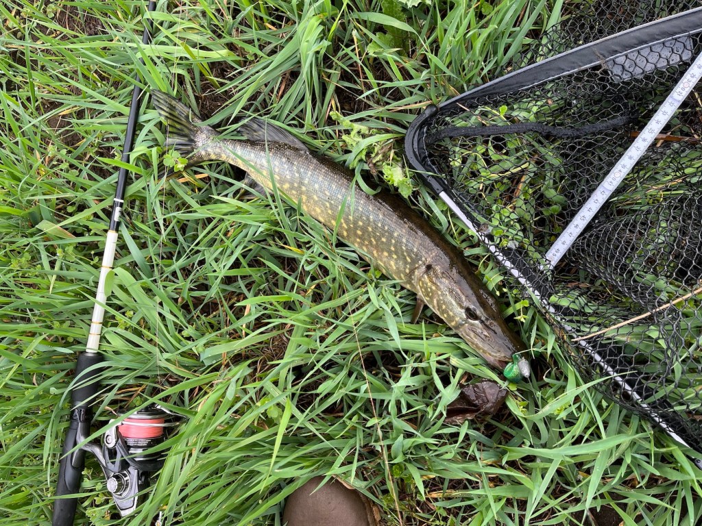 Für das etwa 50 cm tiefe Flüßchen sind erstaunlich gute Fänge bis über 80 cm möglich. Bei der Gewässergröße reichen Pendelwürfe mit, gegen und quer zu der mäßigen Strömung. Kleine Gummifische mit leichtem Jigkopf führe ich dann möglichst ohne Grundkontakt um oder durch das Kraut. In seltenen Fällen kann man die Hechte sogar auf Sicht beangeln. Wenn dann plötzlich das Wasser vor den Füßen explodiert gibt das einen besonderen Adrenalinkick.