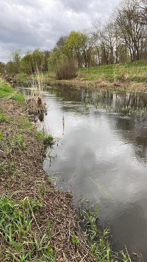 Meine Heimatstadt Senftenberg durchfließt ein kleiner Fluß namens Schwarze Elster. Eingezwängt zwischen Deichen wächst das 3 bis 5m breite Gewässer ab dem Frühsommer teilweise komplett mit Schilf und anderen Wasserpflanzen zu. Aber im April, mit Ende der Hechtschonzeit, lässt es sich noch ganz gut beangeln.