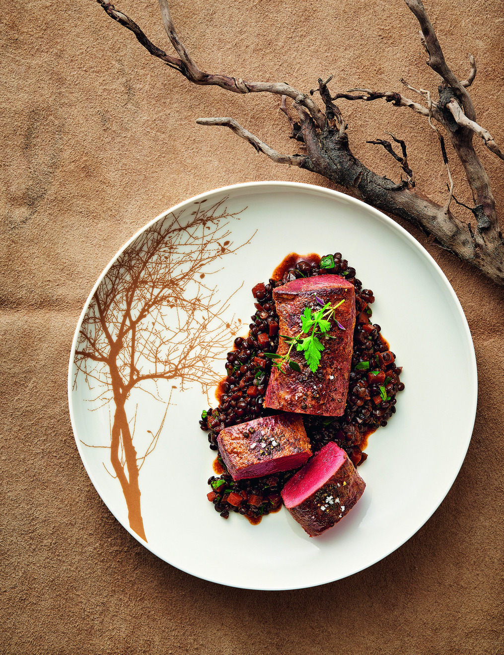 Wild genießen: Rehherz mit Whiskybutter und Rehrücken mit Beluga Linsen
