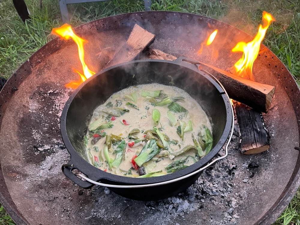 Wir haben draußen gekocht – machen Sie das auch! Aber nur in Ihrem eigenen Garten oder dort,wo es sonst noch erlaubt ist! In freier Natur und bei Trockenheit und Waldbrandgefahr rechtfertigt das leckerste Essen kein Risiko. Und die Strafen sind dort, wo es verboten ist, zu Recht empfindlich…