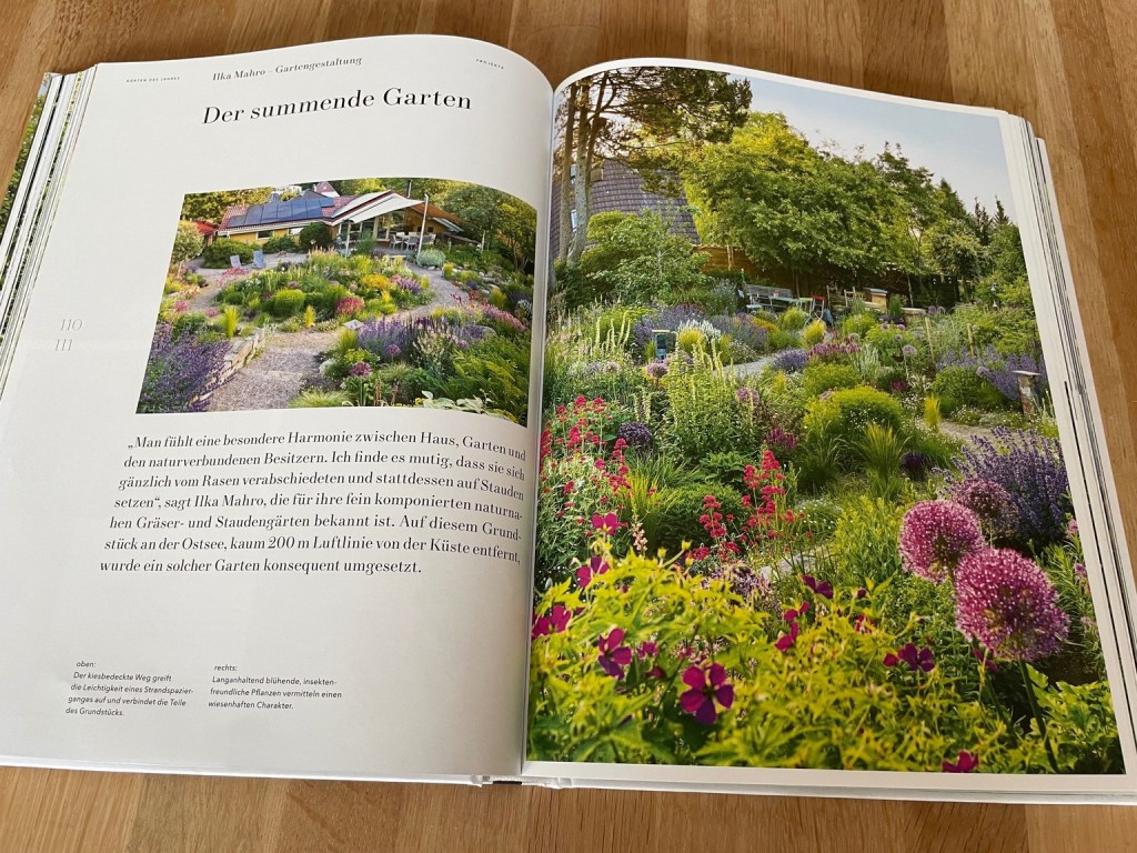 Auf der Rückseite des Schutzumschlags steht u.a. »Die schönsten Privatgärten der kreativsten Gartenplaner im deutschsprachigen Raum.«