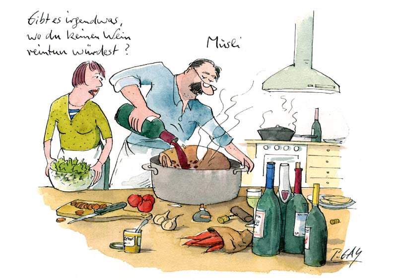 Zum Bœuf bourguignon gehört Pinot noir, am besten natürlich aus Burgund,* notfalls aber auch ein Spätburgunder aus Baden oder von der Ahr. Zu trockener Wein lässt die Sauce zu sauer schmecken.