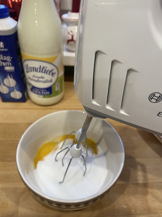 Es begann vor einigen Jahren. Wer mit Teenager-Töchtern gesegnet ist, kommt in der Regel um amerikanische Weihnachtsfilme und -serien nicht herum. Und wenn diese Produktionen nicht gerade brandaktuell sind und vom woke-Zeitgeist gekapert wurden, spielt Eggnog immer eine Rolle. Also wurden wir neugierig und durchsuchten das Netz nach Rezepten. Innerhalb von Millisekunden spuckte die Suchmaschine unendlich viele Varianten aus, wir mussten uns nur noch entscheiden, welche uns am besten gefällt. Mittlerweile haben wir die Mischung nach unseren Vorstellungen perfektioniert. Der erste Schluck schmeckt nach den vergangenen, trubeligen und auch nicht ganz stressfreien Wochen in der Vorweihnachtszeit immer besonders gut. Und spätestens beim zweiten Glas glitzert und strahlt der Weihnachtsbaum noch sehr viel intensiver! Der Eggnog ist unser Startschuss für Weihnachten, mit ihm kommen wir vor dem prasselnden Kaminfeuer zur Ruhe und bereiten uns auf den Heiligen Abend vor.