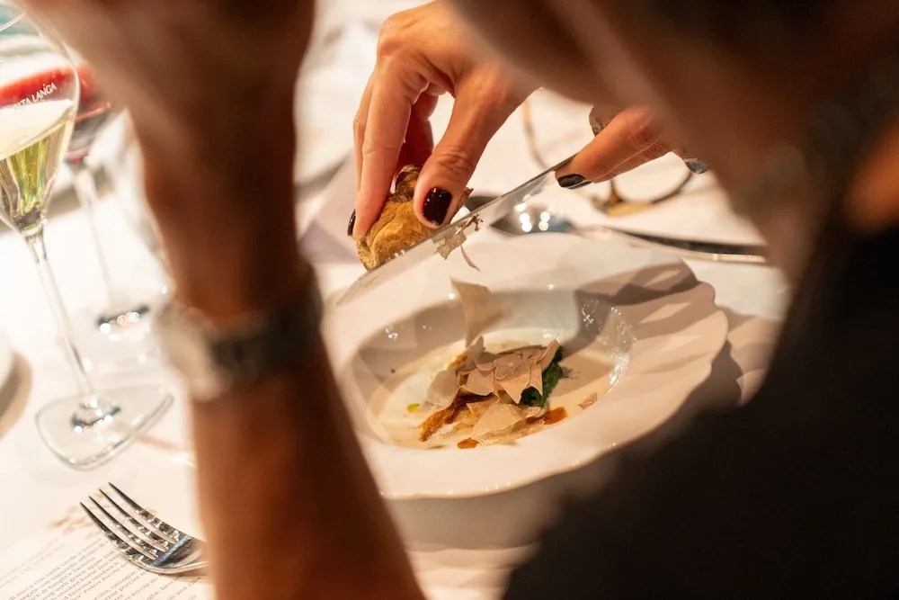 Unter dem Motto „Profondo Rispetto – Tiefer Respekt“ eröffnet sich ein gut siebenwöchiges Gourmetspektakel, das den legendären weißen Trüffel feiert und weit über die Kochkunst hinausgeht. Eine wunderbare Symbiose aus Tradition und kultureller Tiefe. Respekt vor der Erde, die dieses kostbare Gut hervorbringt, vor der mühsamen Arbeit der Trüffelsucher, des Trifolao (ein Spezialist in der Trüffelsuche, der diese uralte Tradition pflegt. Der Beruf wird über Generationen weitergegeben) und ihrer treuen Hunde, der Tabui (gerne Bastardinos oder der Lagotto Romagnolo. Sie werden gezielt für die Trüffelsuche ausgebildet und eingesetzt, was den Wert der Hunde für die Region unterstreicht).