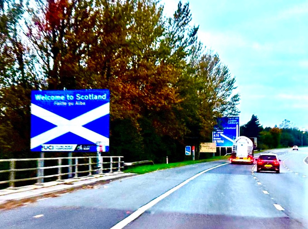 Ich liebe diesen Teil der Fahrt. Vergessen sind die großen Ballungszentren mit den Überresten der industriellen Revolution. Weite Täler, Moorlandschaft, Heide – und dann ein Schild: Failte gu Alba.