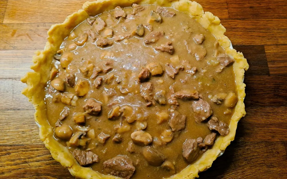 Der Steak and Mushroom Pie ist in seinem Pragmatismus ein typisch englisches Gericht, das aufgrund seiner Handlichkeit ein nutriotionstechnisch ebenso vollständiges wie transportables Mittagessen darstellt, wobei die Teigumhüllung nicht nur Sättigung garantiert, sondern eben auch – im Gegensatz zu dem nach außen hin offenen vornehmen Sandwich oder dem unsäglichen, von Käse und Ketchup triefenden Hamburger – das Innenleben abschirmt und frischhält.