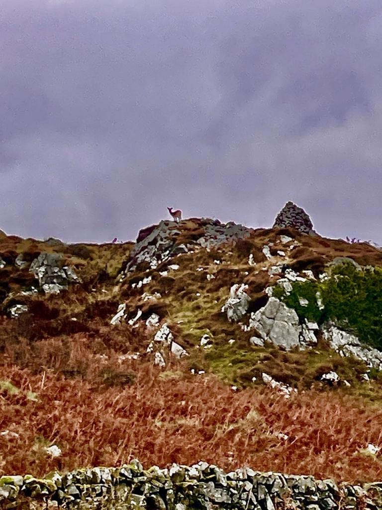 Das Cottage thront wenige hundert Meter vom Herrenhaus über einem kleinen Tal, hinter dem Garten aber steigt eine Felswand steil an und versperrt den Blick auf die dahinterliegenden Gipfel. Dafür kann man in die andere Richtung seine Augen über Meer, Hügel und Berge schweifen lassen. Lange stand ich da und sog die Luft gierig ein – diese Mischung aus Heide, Wald, Nässe und frischer Seeluft.