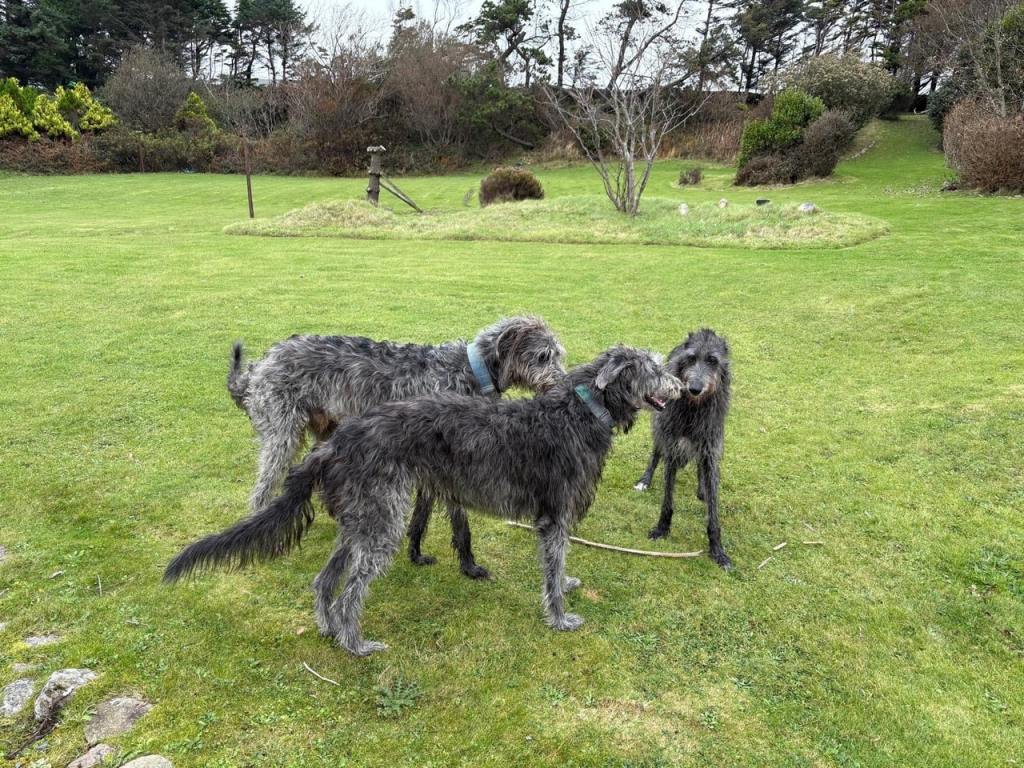 Nun hieß es abwarten und Whisky trinken, denn die Jagd würde erst in der zweiten Woche stattfinden. Am ersten Tag hatten wir uns daher direkt mit einer Freundin verabredet. Vor ein paar Jahren hatten wir Islay das erste Mal besucht und uns zum Dog Play Date mit ihr und ihrer Mutter getroffen. Deerhounds treffen ja selten auf andere Deerhounds. Damals tobten unsere beiden jungen Hunde über den Strand. Später schenkten wir ihr einen unserer Welpen – zwei Deerhounds sind ja besser als einer. Ich denke, es war die richtige Entscheidung. Mittlerweile hat sie die Insel, wie so viele junge Leute, verlassen und wohnt in einer der schottischen „Metropolen“: Kirkwall (8000 Einwohner). Aber für uns hatte sie den langen Weg auf sich genommen und war zum Heimatbesuch auf die Insel gekommen.
