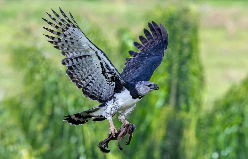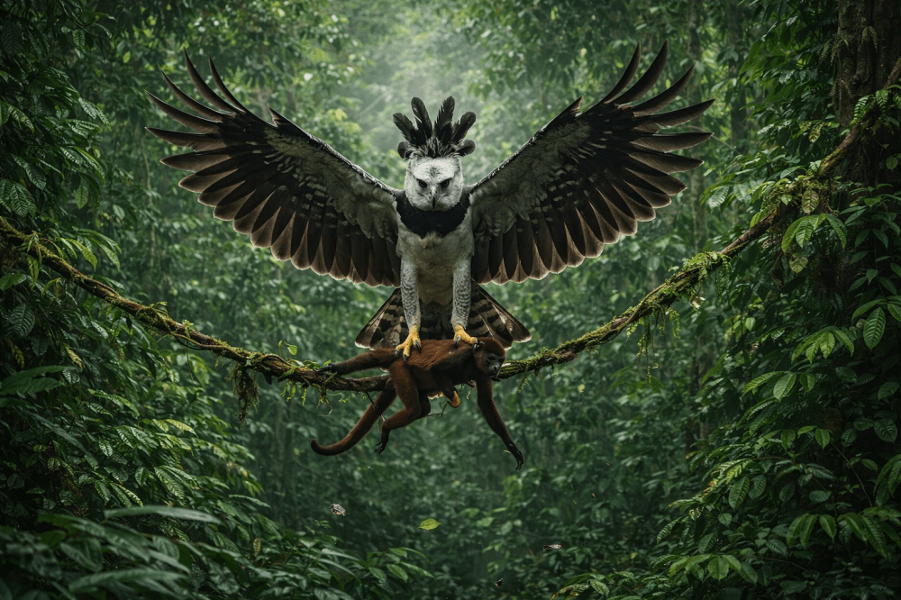 Hoch oben auf den Überständerbäumen lauert sie fast einen ganzen Tag lang und scannt das grüne Meer unter sich, bevor sie mit einem rasanten Stoßflug von 80 km/h zuschlägt. Ihre Beuteliste liest sich wie ein Inventar des tropischen Regenwaldes: Neben großen Papageien und Reptilien bilden vor allem baumbewohnende Säuger wie Affen und Faultiere ihre Hauptnahrung.